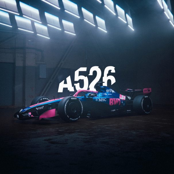 El A526 luce muy similar a su predecesor. Los únicos cambios reseñables son la mayor presencia del azul en el morro como fondo para el logo del Alpine, además del degradado de tonos azules desde la parte delantera a la trasera. El rosa mantiene la misma disposición que tenía en el A525.