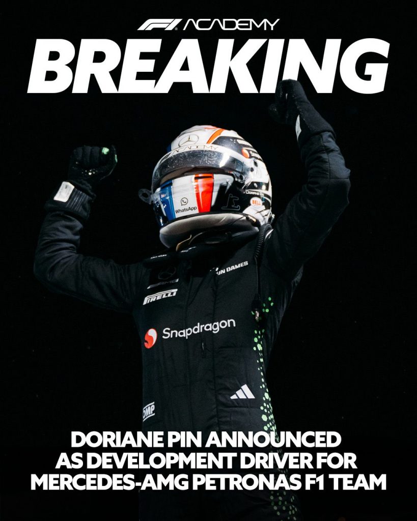La F1 en 2026 sufre un cambio de reglamentación enorme y, por ende, el trabajo en los simuladores y en las fábricas se intensifica. Ante esta situación, Mercedes mueve ficha y promociona a Doriane Pin, subcampeona en 2024 y campeona 2025 en la F1 Academy, para que adopte el rol de piloto de desarrollo y ayude a George Russell y Kimi Antonelli en esta nueva era de la F1.