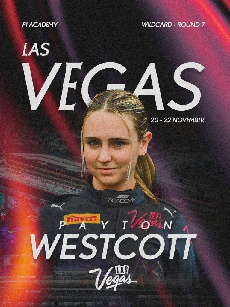 A falta de semana y media para que la F1 Academy aterrice en Nevada, la categoría 100% femenina ha confirmado a la Wild Card de la séptima y última ronda de la temporada 2025. Con la colaboración de Visit Las Vegas, Westcott llevará un mono y una livery acorde a la noche vegasina. No será la primera vez que la piloto debute en la F1 Academy, pues estuvo presente en el Test de Rookies de Navarra, con unos grandes resultados. Payton estuvo en el top 3 por la mañana, mientras que, por la tarde, lideró la sesión.