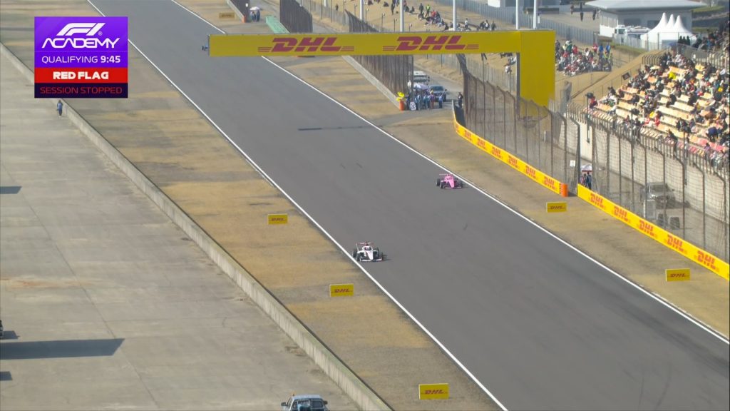 10 minutos para la bandera a cuadros cuando Kaylee Countryman se quedó parada en la recta de atrás. La bandera roja relucía en el trazado chino por la piloto de Haas, no obstante, la estadounidense logró retomar la marcha pese a que la bandera roja se mantuvo.