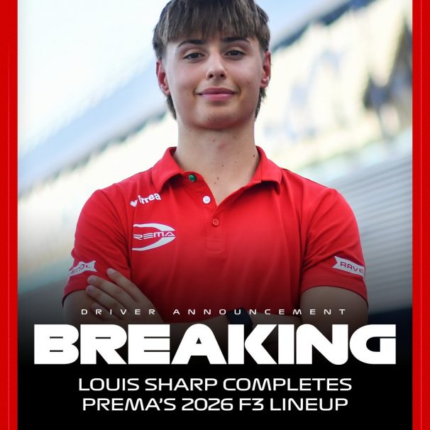 Tras su sólida temporada en la categoría, Louis Sharp se une ahora a PREMA como segundo piloto confirmado para la Fórmula 3 2026, formando parte del trío junto a Enzo Deligny y a James Wharton.