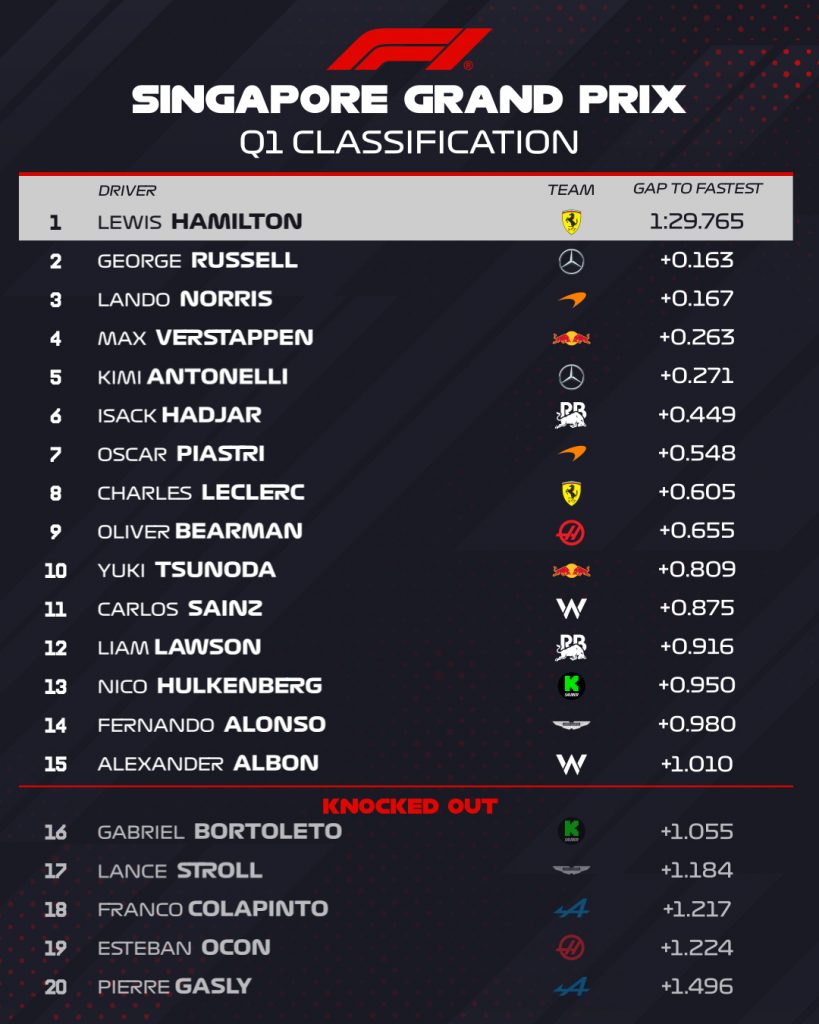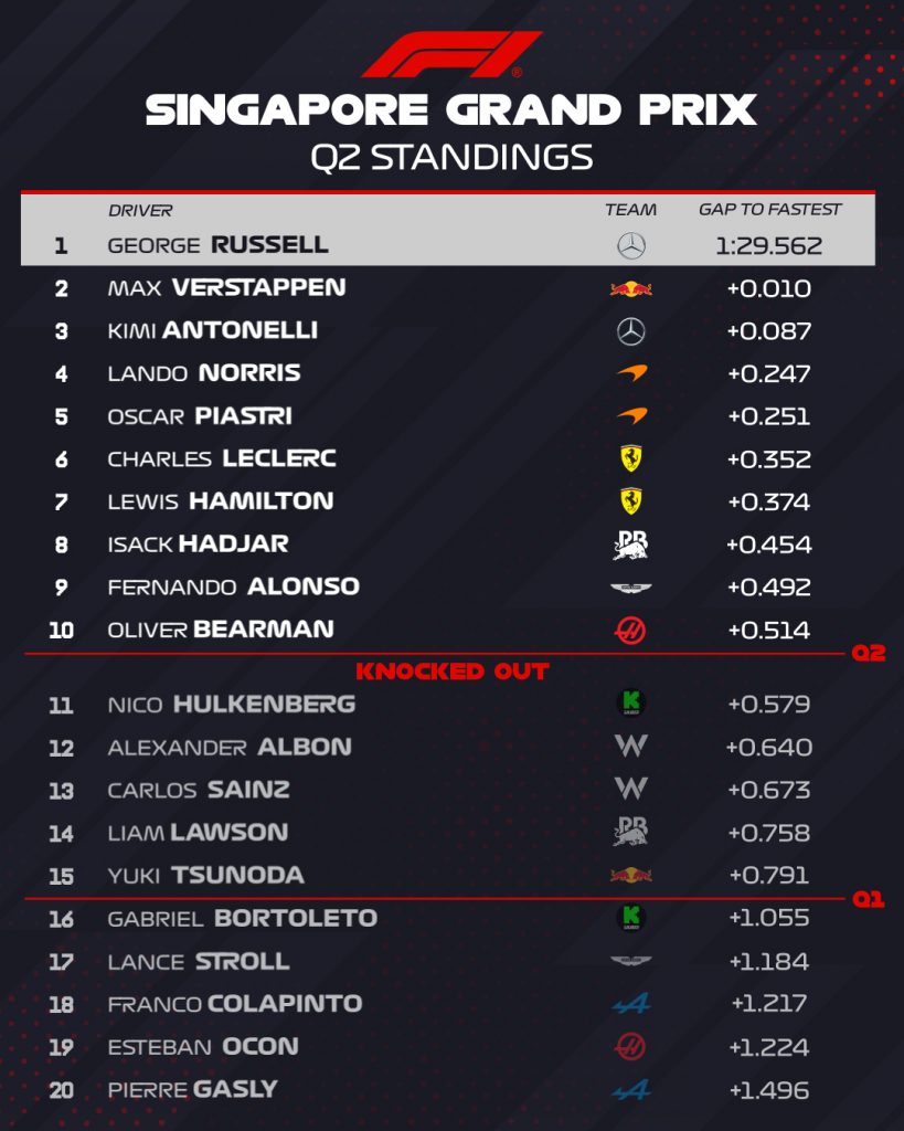 Eliminados en Q2: Sainz, Albon, Lawson, Tsunoda y Hülkenberg.