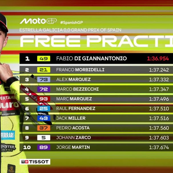 MotoGP está de vuelta en Jerez, y lo hace con Di Giannantonio primero, seguido de Morbidelli y Álex en los resultados de los libres 1