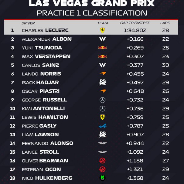 Resultados libres 1: Leclerc vuelve a la primera posición en Las Vegas