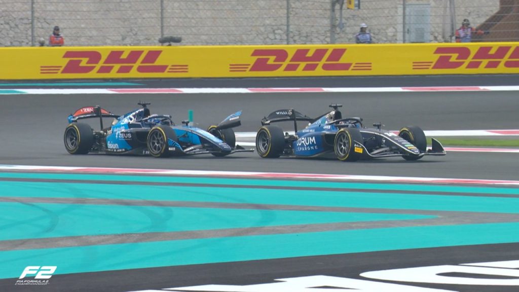 Última sprint del año en la Fórmula 2, el campeonato de equipos aún en juego entre Invicta y Hitech. Arvid Lindblad comenzaba desde la pole invertida, seguido de Joshua Dürksen y Victor Martins. Nikola Tsolov originalmente saldría en segunda posición, pero el búlgaro recibió una penalización de 3 puestos por molestar a Browning en la qualy.
