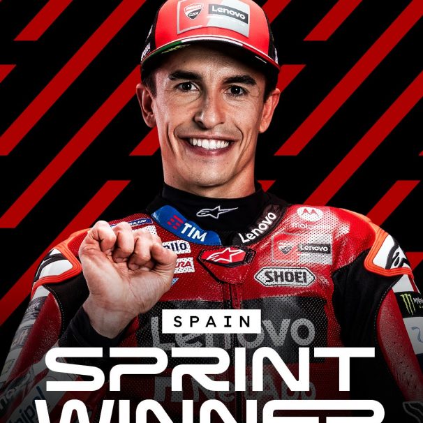 Bandera a cuadros, y pese a una caída, Marc Márquez logra la victoria sprint en el GP de España de MotoGP. Francesco Bagnaia entraba segundo en meta, doblete para el Ducati Lenovo por primera vez desde el GP de Japón de 2025, tanto en carrera como en sprint. Tercero Franco Morbidelli, remontando desde el P18 al haber entrado de los primeros al box y cerrando otro triplete para Ducati. Detrás: Binder P4, Di Giannantonio P5, Raúl P6, Quartararo P7, Zarco P8, Marini P9, Rins P10 en los resultados de la sprint.